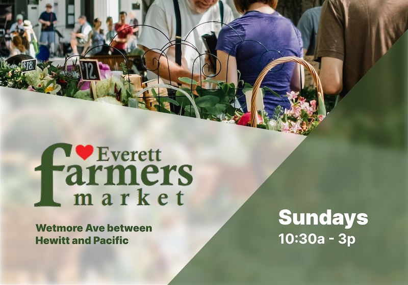 The Everett Farmers Market is located on Wetmore Ave between Hewitt and Pacific, from 10:30am to 3:00pm on Sundays.
